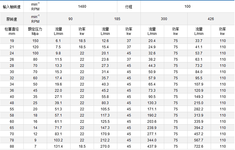 適用于清洗泵、流程泵、尿素銅液泵、基甲酸銨液二甲泵、液態(tài)二氧化碳泵、食品均質(zhì)泵、洗滌劑料漿泵、氨水泵、料漿泵、增壓泵、注水泵、除磷泵、輸油泵、除銹泵。 組裝形式:有臥式、立式、固定式、移動(dòng)式。 傳動(dòng)形式:有電動(dòng)機(jī)、柴油機(jī)、齒輪箱、皮帶輪、電磁調(diào)速、變頻調(diào)速。 表中技術(shù)參數(shù)作為選型參考,每個(gè)品種的泵都裝有安全調(diào)壓閥,泵的壓力可任意調(diào)節(jié)。 你選型時(shí)表中流量不合適,可用電磁調(diào)速,變頻調(diào)速,變換柱塞直徑來調(diào)節(jié)流量,滿足選型需要。 泵體材料有合金鋼、馬氏體、奧氏體不銹鋼、316、316L雙相鋼。