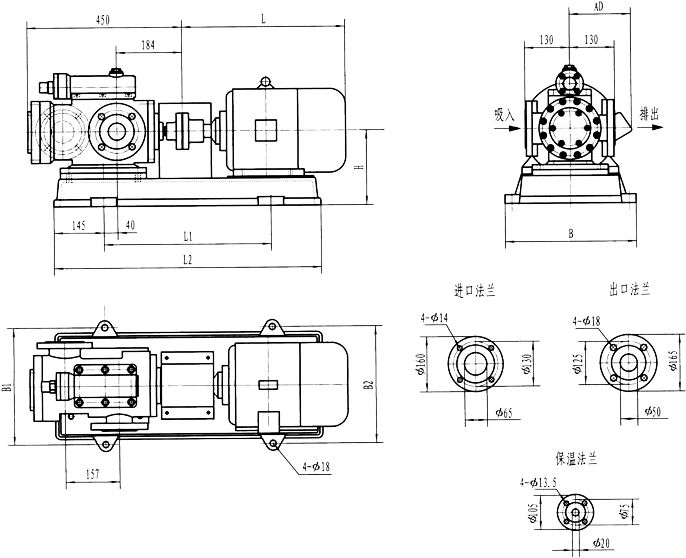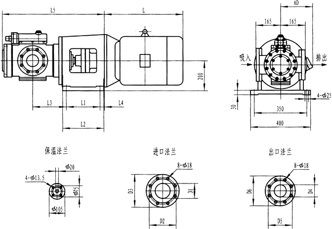 3GBW35,3GF35型法蘭式泵外形及安裝尺寸