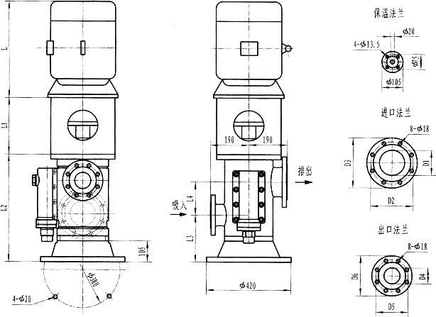 3GR36型法蘭式泵外形及安裝尺寸