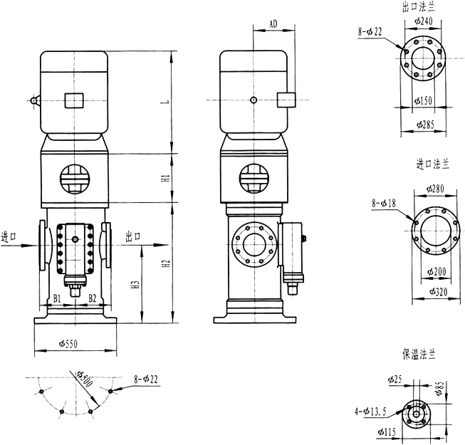 3GF30型法蘭式泵外形及安裝尺寸